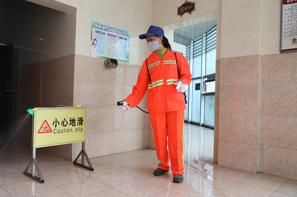 按照预定计划,环卫班消毒范围包括新老两个矿区和一个石溪片区,矿区中一个观音溪花园面积就达5000平方米,细算下来消毒区域达数万平方米!“出门戴口罩,别去凑热闹……”耳旁不时传来防疫宣传知识和举措,原来在绿化班常常形影不离的邓容和邓琼两姐妹因分工区域不同,第一天抗“疫”却要分开了,而且必须到处串,所到之处必须消毒无遗漏,她们深知防疫工作最终要落实到基层,落实到每个人的行动,自己的岗位正是基础中的重中之重!