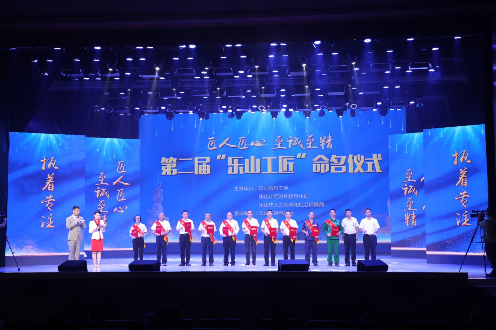 市委书记马波在致辞中说:大国工匠是时代的标杆,是最闪亮的精神坐标。“乐山工匠”是坚守岗位的普通劳动者,是平凡岗位上创新创造的奉献者,体现了执着专注的匠人追求、精益求精的匠人境界、一丝不苟的匠人品格、追求卓越的匠人取向,是全市广大劳动群众的骄傲。全市广大劳动者要见贤思齐、学习模范,自觉把工匠精神内化于心、付之于行,让工匠精神在嘉州大地传承接续、发扬光大。活动现场,55名“乐山工匠”依次走到台前,接受这份属于劳动者的荣光。